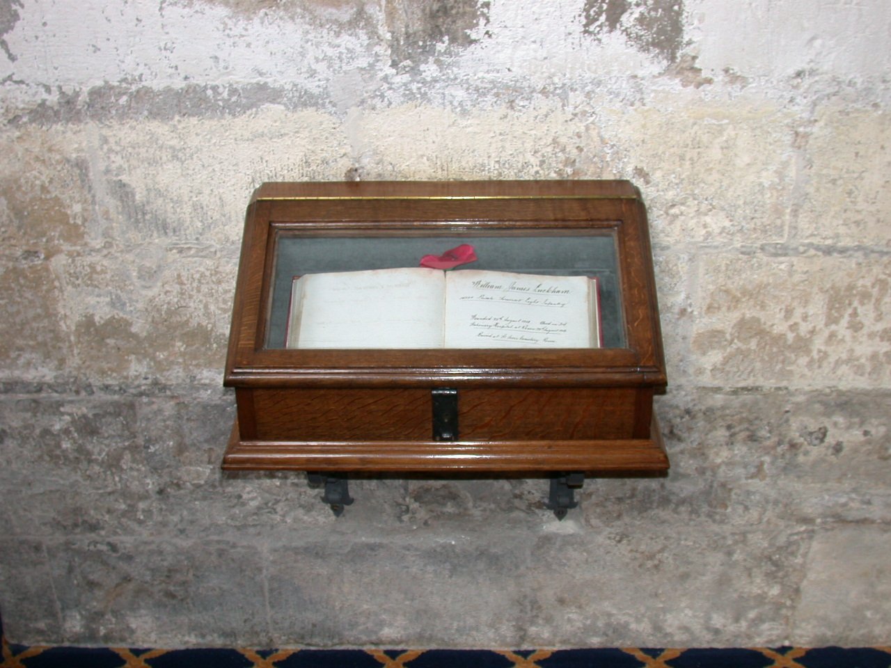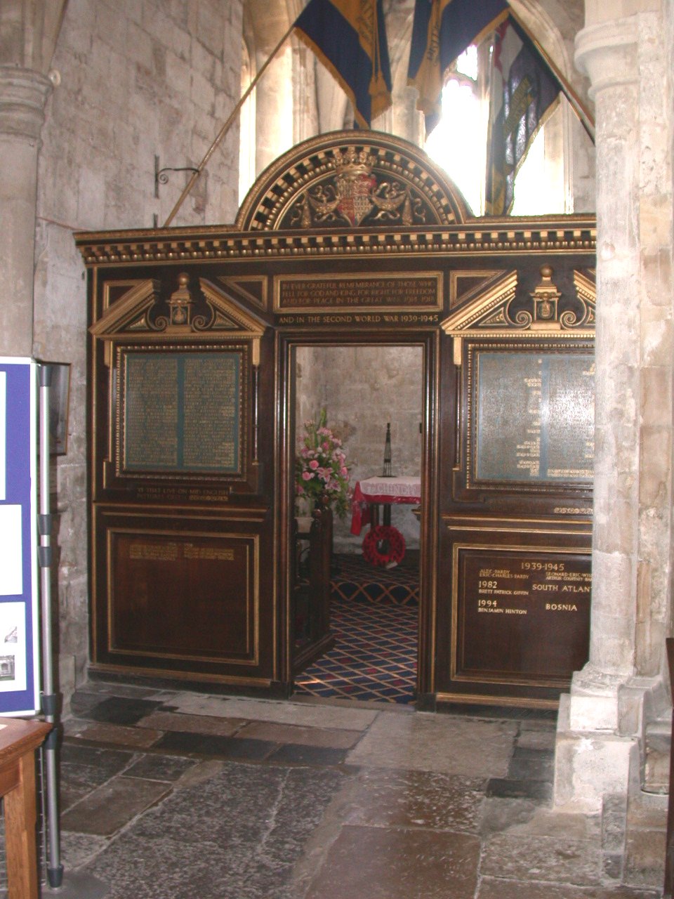 Memorial chapel in Christchurch Priory, a panel of names each side of the entrance to the chapel