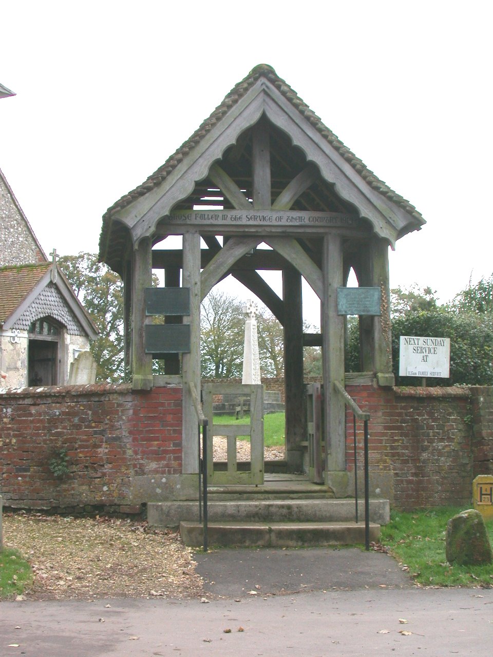 Inscription on beam at front of lychgate.