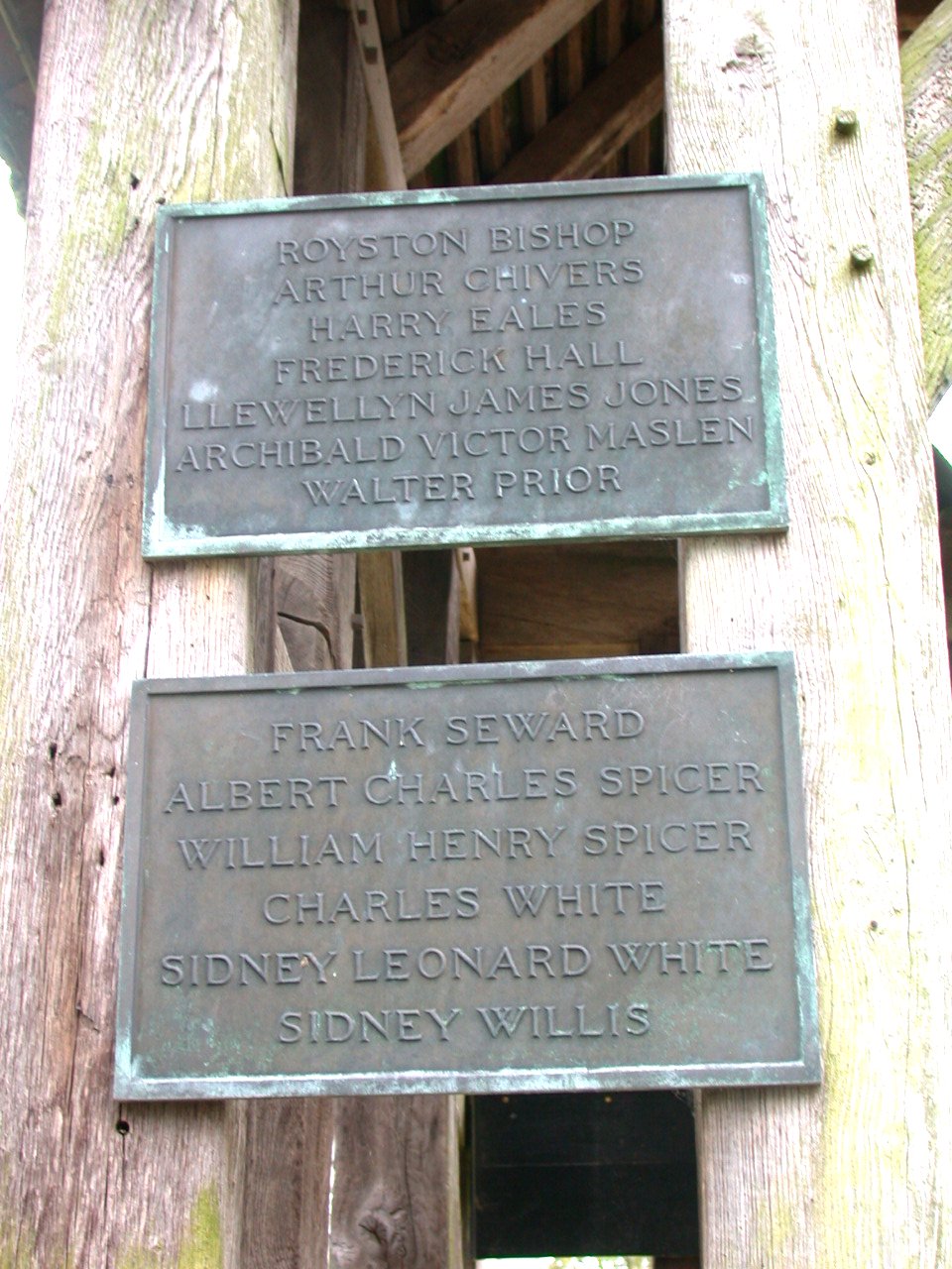 Two bronze plaques on left front of lychgate at entrance to All Saints Churchyard.