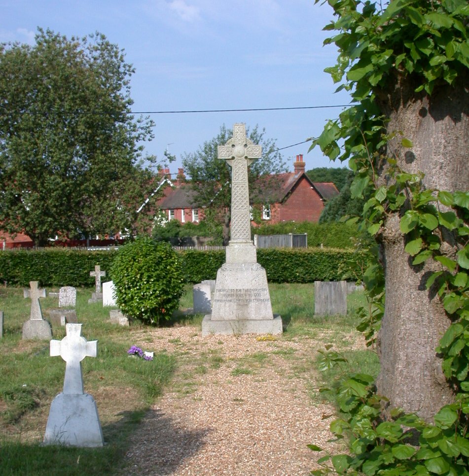 Stone cross in St Mary's Churchyard, no names but inscription.