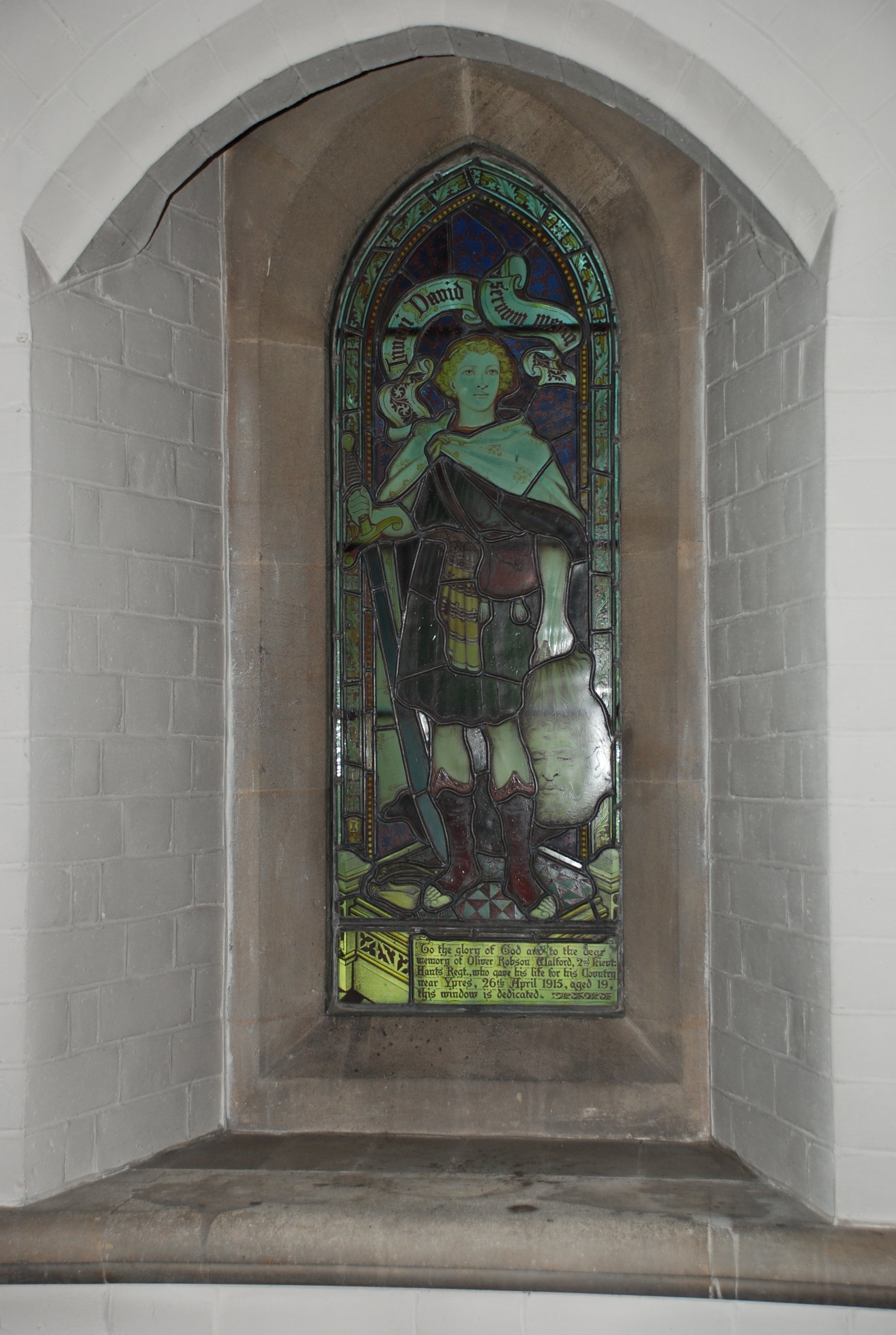 Window in St Mary's Church, inscription at bottom.