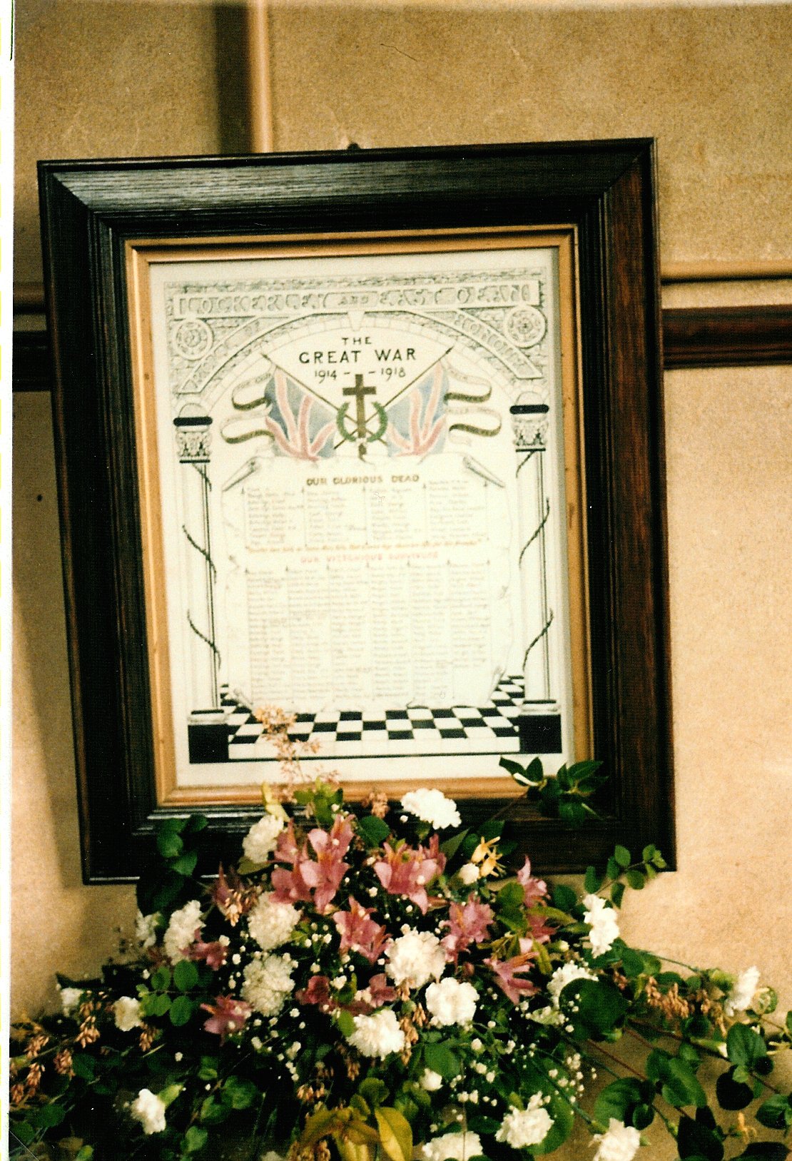 A picture of Frederick Luke, V.C. D.C.M. is in a showcase at the back of the church.