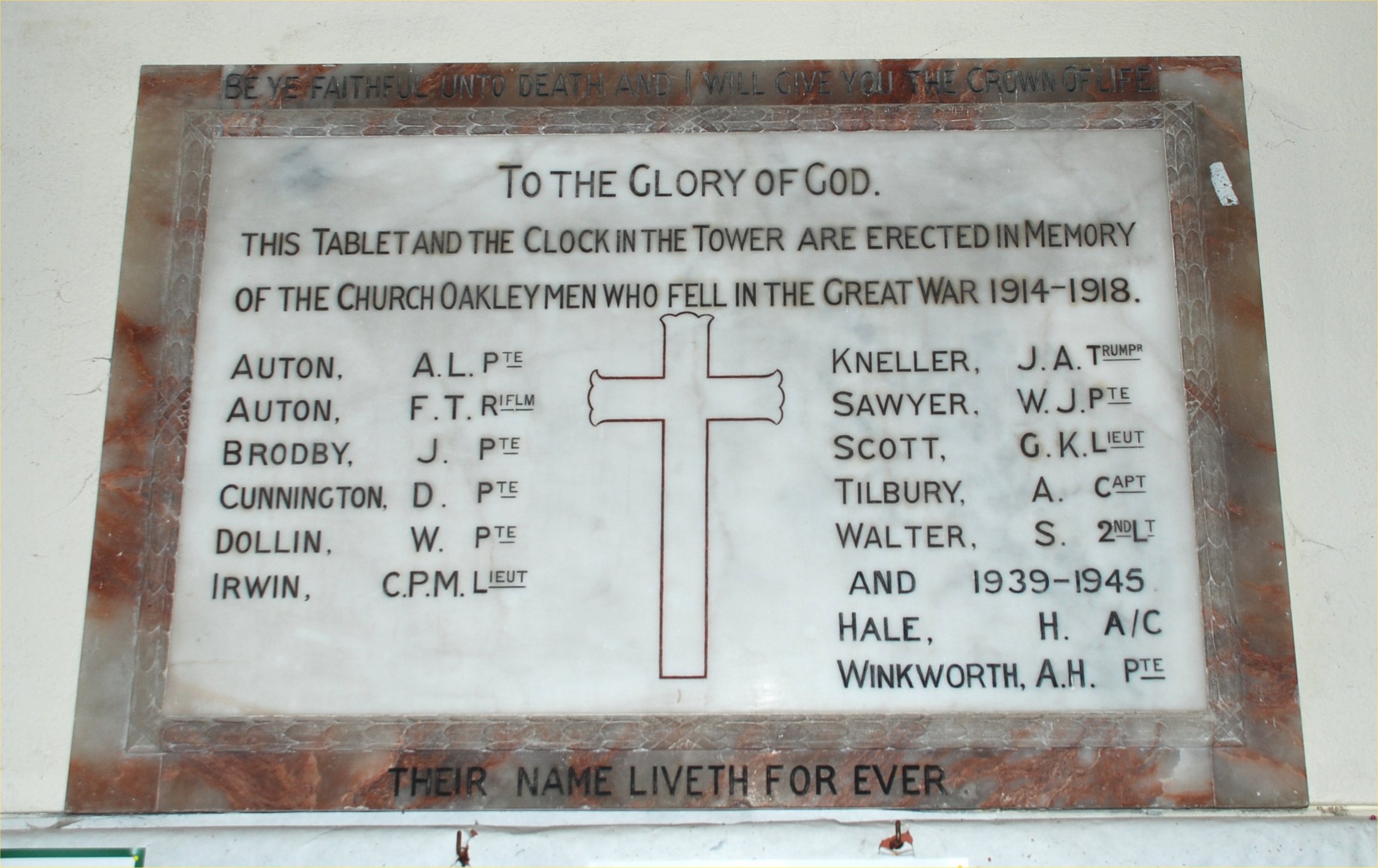 of the Church Oakley Men who fell in the Great War 1914 - 1918.