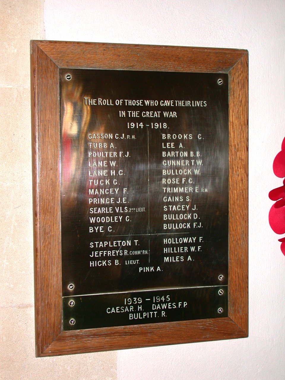 The Roll of those who gave their lives in the Great War 1914 - 1918.