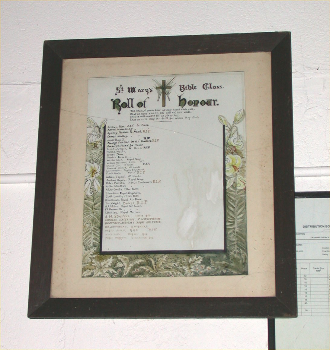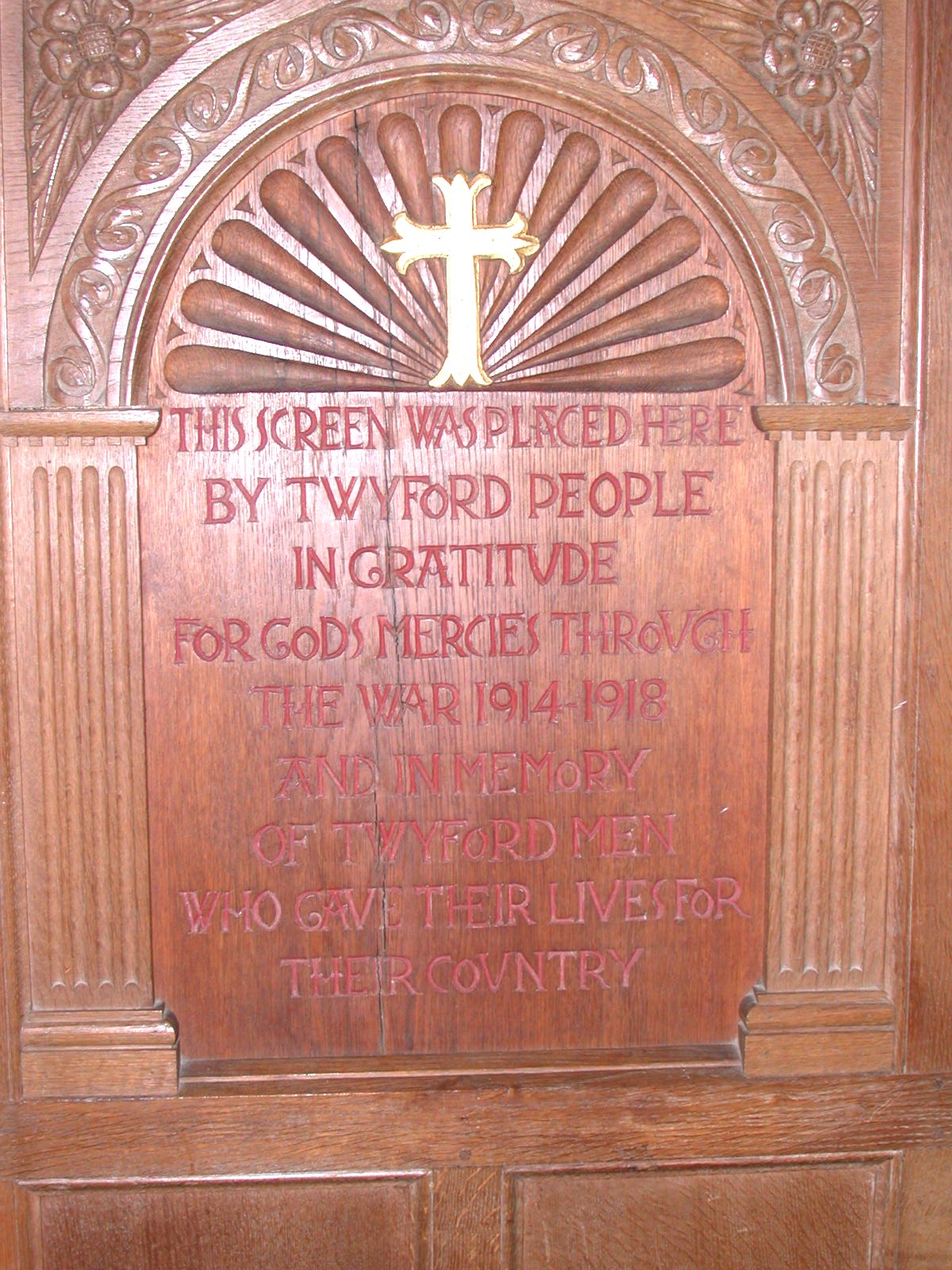 In Twyford Parish Hall two wooden plaques on the wall listing those who served abroad.