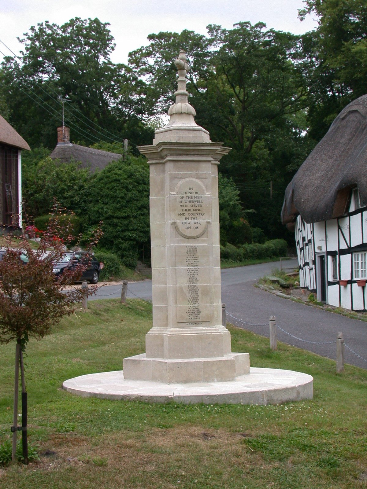 Stone memorial in village centre.